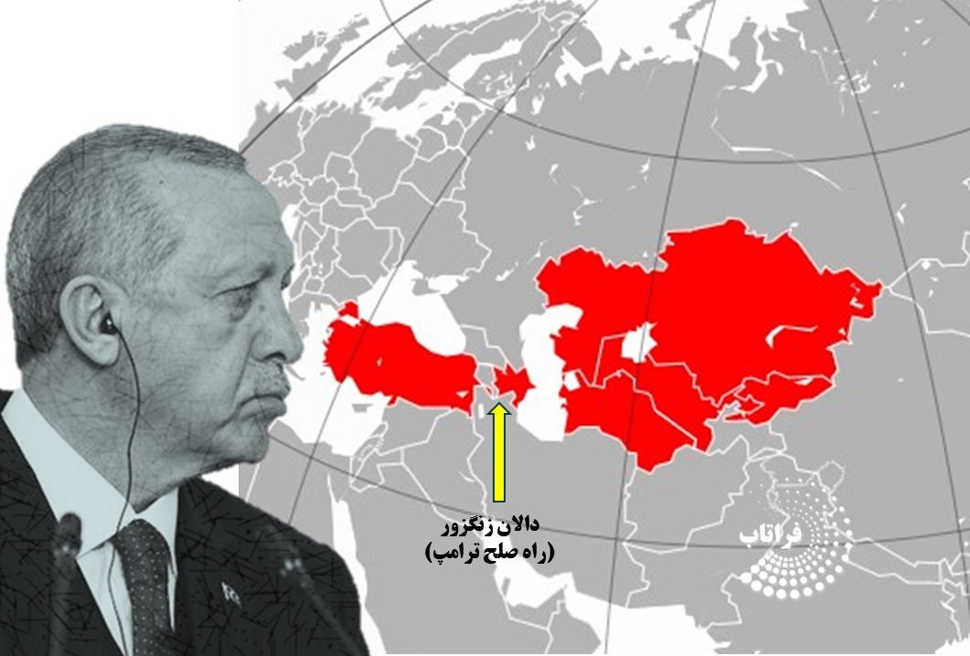 فراتاب: بخش مهمی از آنچه که میان باکو و ایروان بر سر زنگزور اتفاق افتاده است ناشی از این نقشه و نوع نگاه و آرزوی این مرد برای اتصال رنگهای قرمز به یکدیگر بر روی آن است، رنگهایی که در صورت اتصال، برای او به معنای تحقق رویای جهان یکپارچه تُرک به واقعیت است! در حقیقت به نظر میرسد پیروز اصلی میزگرد کاخ سفید، شاید مرد اول کاخ ریاست جمهوری آنکارا بود که سالهاست رویای «اتصال جهان تُرک» را در سر میپروراند. توافق صلحی که در واشنگتن امضا شد، هرچند محصول گفتوگوهای پیچیده و میانجیگری چندجانبه بود، اما بیش از همه، نقطه عطفی در تحقق بلندپروازیهای استراتژیک ترکیه به شمار میرود؛ پروژهای که مسیرهای ترانزیتی اوراسیا را به هم متصل کرده و جایگاه آنکارا را در قلب بازی قدرتهای منطقهای تثبیت میکند. برای او، این توافق نه فقط یک موفقیت دیپلماتیک، بلکه تحقق رویای بزرگی است که سالهاست در مسیرش قدم بر میدارد.
